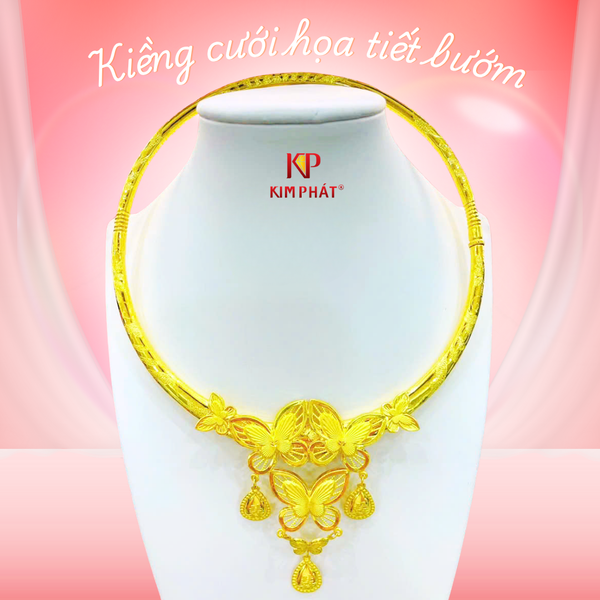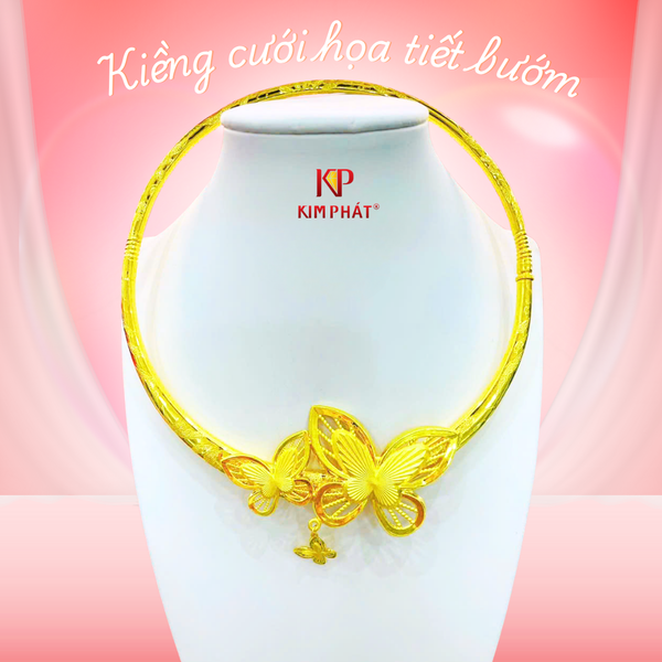 Nắm bắt xu hướng thời trang cưới hiện đại, Tiệm vàng Kim Phát giới thiệu BST kiềng cưới họa tiết bướm sang trọng, tinh xảo, được chế tác từ vàng 24K – chất liệu tượng trưng cho sự tròn đầy và thịnh vượng.